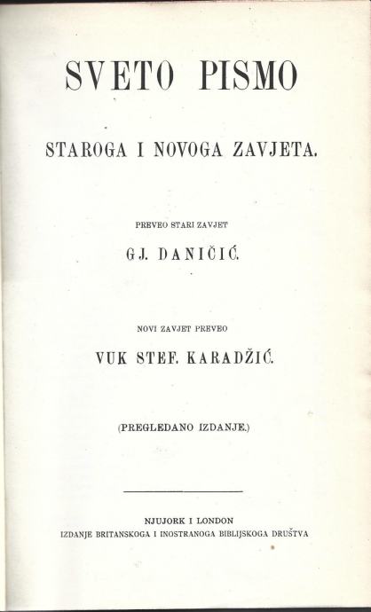 Izdanje Britanskog i inostranoga biblijskoga drustva, Njujork, i London, 1950., tvrdi uvez, vrlo dobro očuvano, Croatian Bible, Daničić/Karadžić