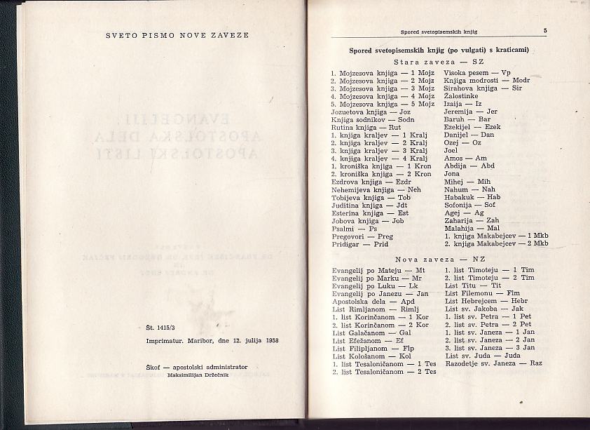 SVETO PISMO NOVE ZAVEZE - preveli Frančišek Jere , Gregorij Pečjak i Andrej Snoj