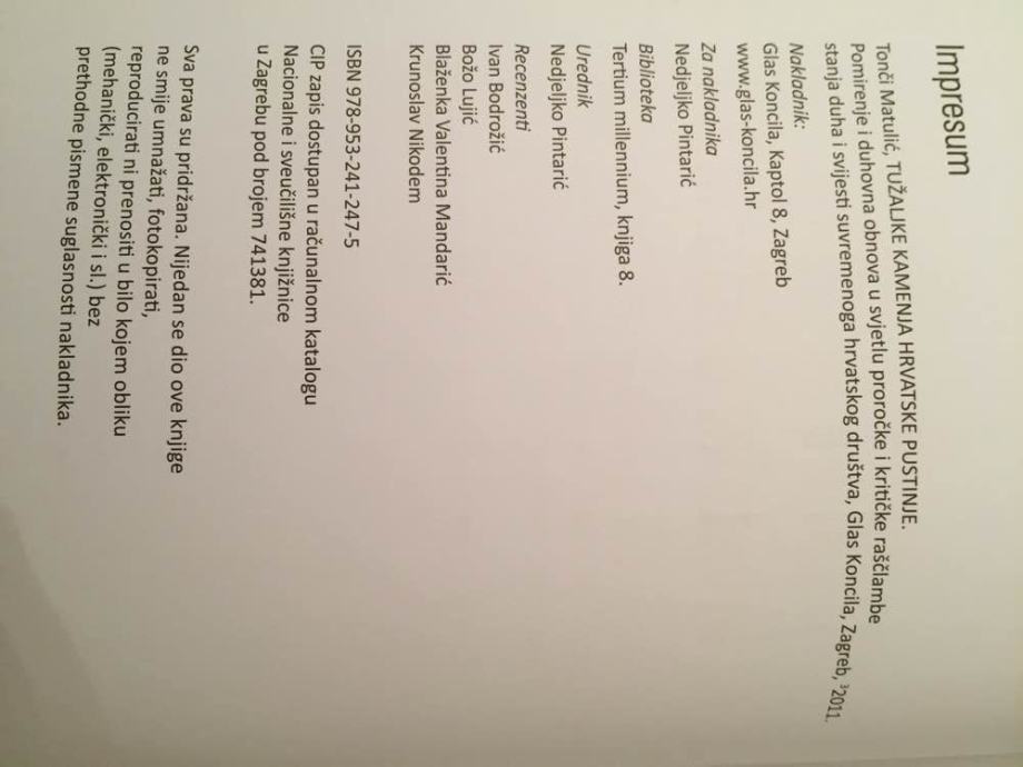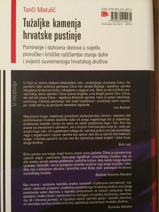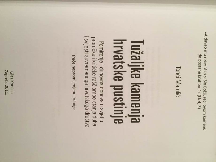 Matulićeva knjiga, nadahnuta proročkom oduševljenošću istinom i napisana radi pročišćavanja hrvatske katoličke duše od svega negativnoga što je opterećuje, predstavlja teološku novinu ne samo na našim prostorima nego i šire. Ona nije pisana sa znanstvenim odmakom, niti s brojnim informacijama koje se inače posvuda mogu naći, niti s gledanjem tuđega zla i upiranja prstom na tuđe promašaje, nego s angažiranom vjerom vjernika koji upravo zato što je vjernik ima hrabrosti, snage i interesa upozoriti na sve ono što opterećuje stanje svijesti i duha hrvatskoga društva. (Božo Lujić) Bitnu poruku ove knjige mogli bismo izraziti ovim riječima: Crkva je pozvana kroz cjeloviti odgoj i pastoralno djelovanje izgrađivati »unutrašnjeg čovjeka« koji će dati snažan zamah razvoju građanske i političke kulture. Iako naslov knjige asocira tjeskobu i beznađe, ona je ponajprije teološka budnica koja svoje izvorište i ishodiše crpi u biblijskom iskustvu i proročkoj snazi Božje riječi pozivajući na obnovu unutrašnjeg čovjeka. (Blaženka Valentina Mandarić) Kao izvorna i sustavna teološka analiza osnovnih vrijednosno-normativnih, moralnih i duhovnih prijepora i problema suvremenoga hrvatskog društva ova knjiga predstavlja važan doprinos u izgradnji pretpostavki za njihovo rješavanje. Autor genijalno i hrabro brani i razvija poziciju teologije u hrvatskoj društvenoj, znanstvenoj, ali i crkvenoj javnosti, te izgrađuje vlastiti vjernički gorljiv i teološki znanstveno utemeljen pristup problemima koji opterećuju suvremeno hrvatsko društvo. (Krunoslav Nikodem) U knjizi je veoma izražena ekleziološka nota i produbljenje shvaćanja Crkve. Na površinu izlazi autorovo poimanje Crkve kao naroda Božjega i zajednice vjernika otkupljene Kristovom krvlju i otkupljene u njegovo ime. Sklon je vrlo kritičkom preispitivanju stava vjernika i Crkve prema drugima, a ne drugih prema Crkvi. Crkva, ako želi biti prava Crkva – zajednica Kristovih vjernika, mora ići putem obraćenja, pomirenja, čišćenja pamćenja i biti iznad revanšizma i uzvraćanja istom mjerom, pa i onda kad su joj povijesno nanesene nepravde. (Ivan Bodrožić)