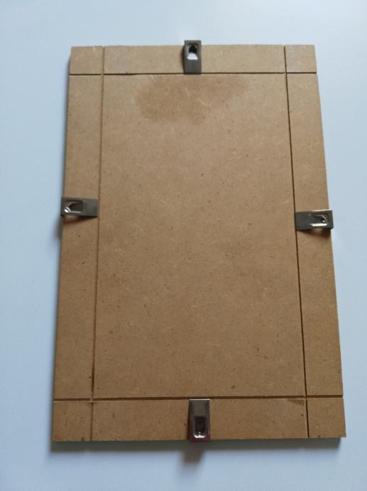 Staklo na slici je obrađeno. Otraga ploča i kopčice za objesiti.