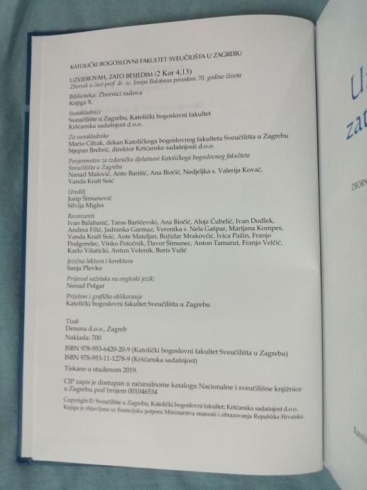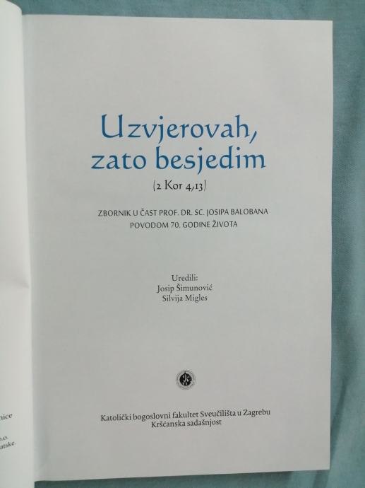 Uzvjerovah, zato besjedim (2 Kor 4,13). Zbornik u čast prof. dr. sc. Josipa Balobana povodom 70. godine života