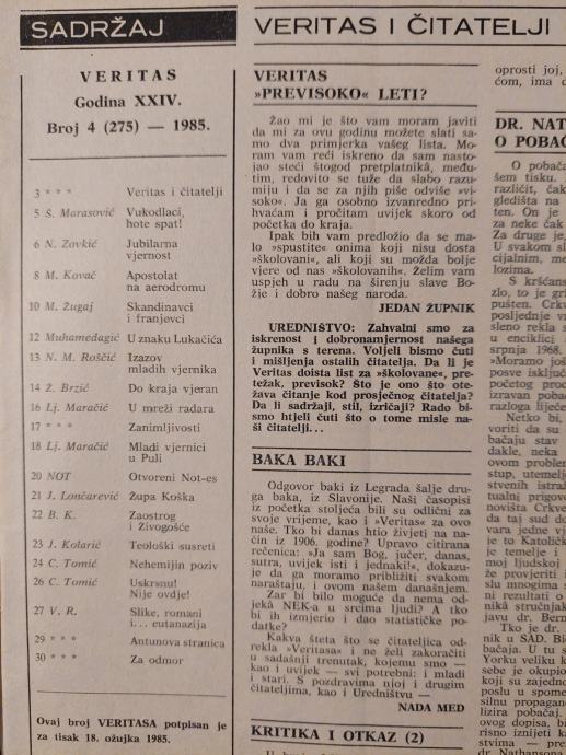 VERITAS - Revija sv. Antuna Padovanskoga / Br. 4. - 1985.