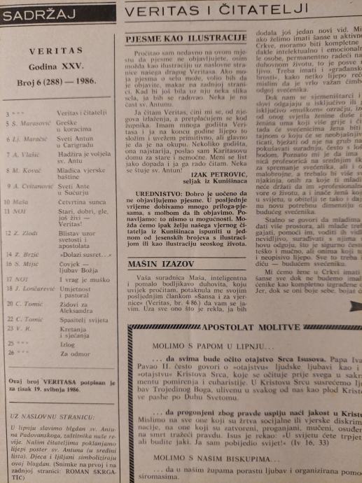 VERITAS - Revija sv. Antuna Padovanskoga / Br. 6. - 1986.