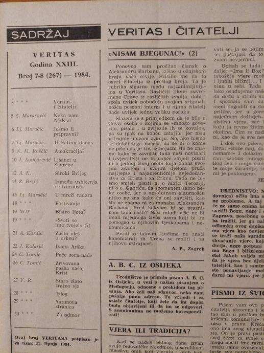 VERITAS - Revija sv. Antuna Padovanskoga / Br. 7-8. - 1984.