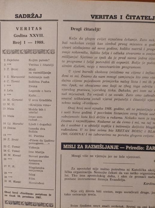 VERITAS - Revija sv. Antuna Padovanskoga / Br. 1. - 1988.