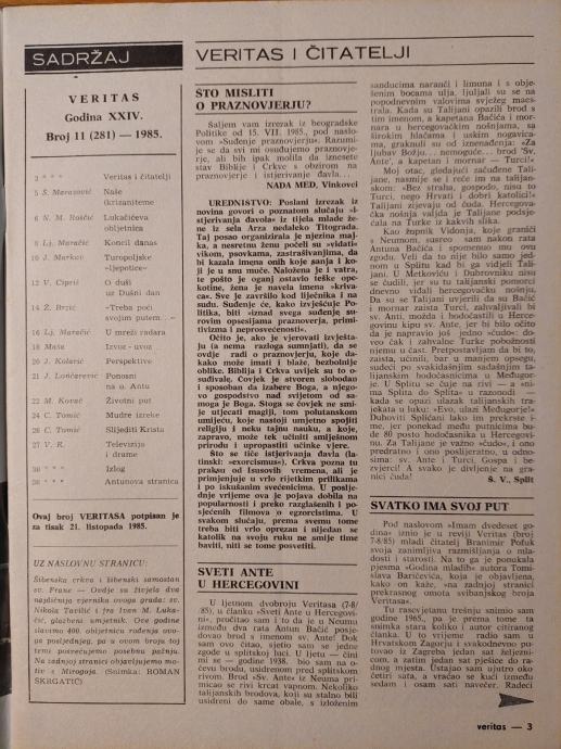 VERITAS - Revija sv. Antuna Padovanskoga / Br. 11. - 1985.