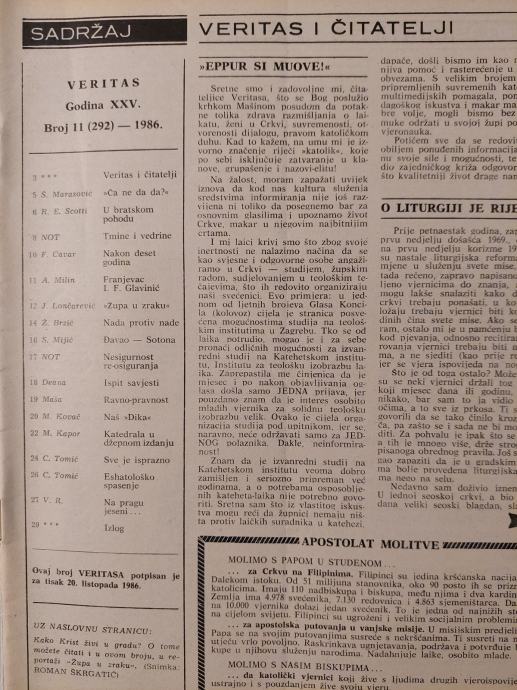 VERITAS - Revija sv. Antuna Padovanskoga / Br. 11. - 1986.