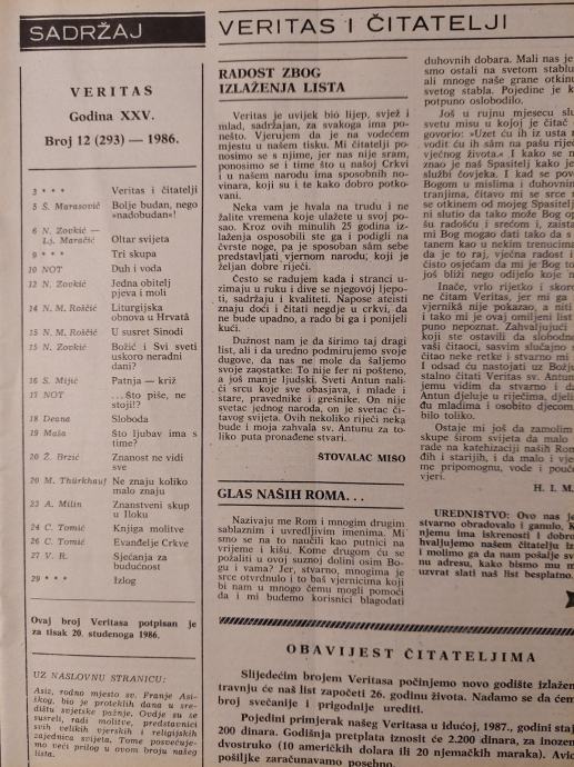 VERITAS - Revija sv. Antuna Padovanskoga / Br. 12. - 1986.