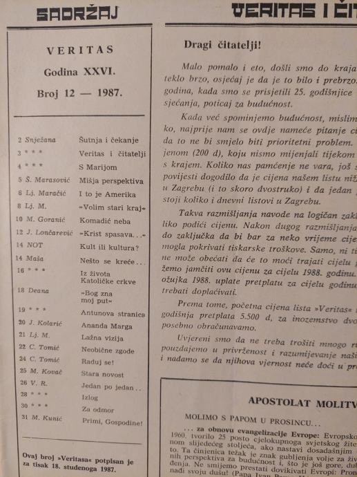 VERITAS - Revija sv. Antuna Padovanskoga / Br. 12. - 1987.