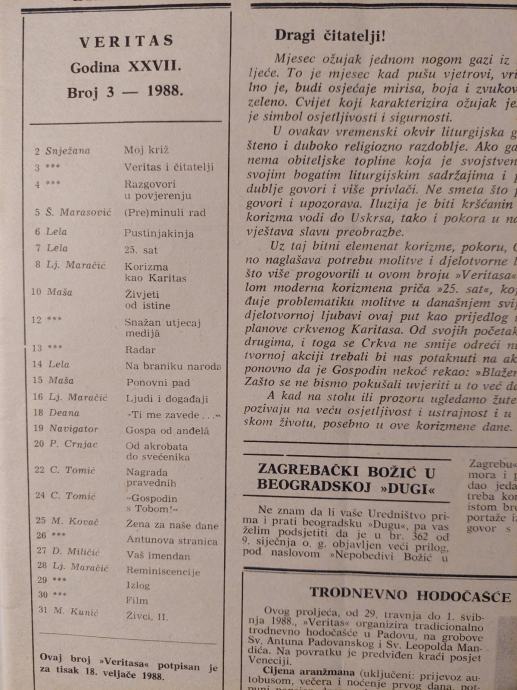 VERITAS - Revija sv. Antuna Padovanskoga / Br. 3. - 1988.