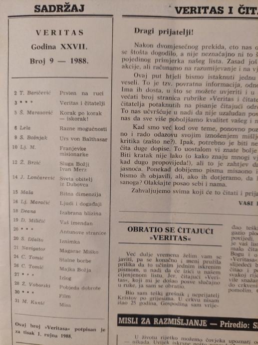 VERITAS - Revija sv. Antuna Padovanskoga / Br. 9. - 1988.