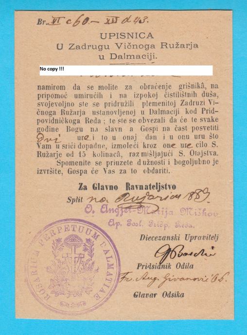 VIČNO RUŽARJE Pravila i dužnosti članova Vičnog Ružarja Split 1889. g.