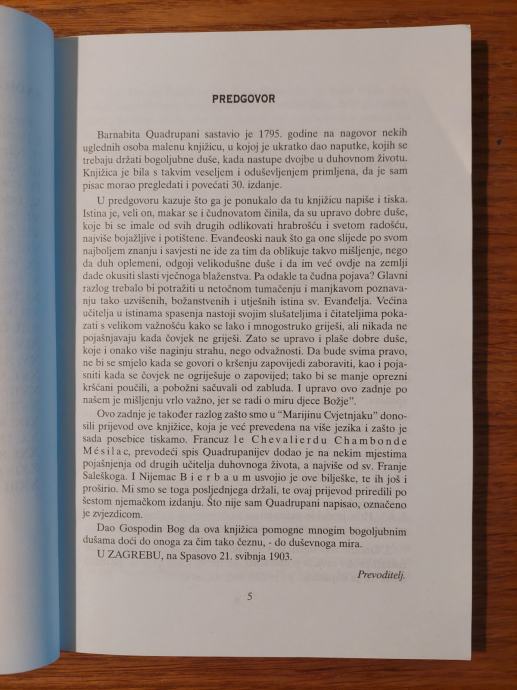 Barnabita Quadrupani sastavio je 1795. godine na nagovor nekih uglednih osoba malenu knjižicu, u kojoj je ukratko dao naputke, kojih se trebaju držati bogoljubne duše, kada nastupe dvojbe u duhovnom životu. Knjižica je bila s takvim veseljem i oduševljenjem primljena, da je sam pisac morao pregledati i povećati 30. izdanje.