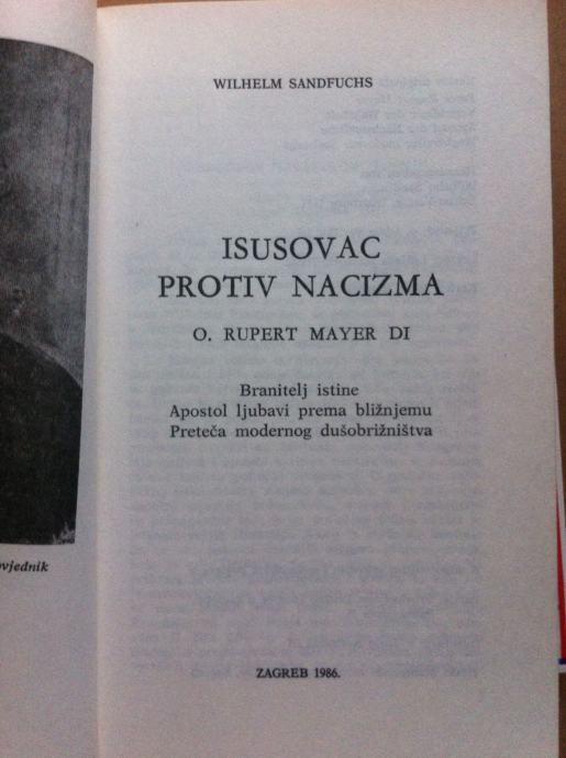 Wilhelm Sandfuchs – Isusovac protiv nacizma. O. Rupert Mayer DI. Branitelj istine, apostol ljubavi prema bližnjemu, preteča modernoga dušebrižništva