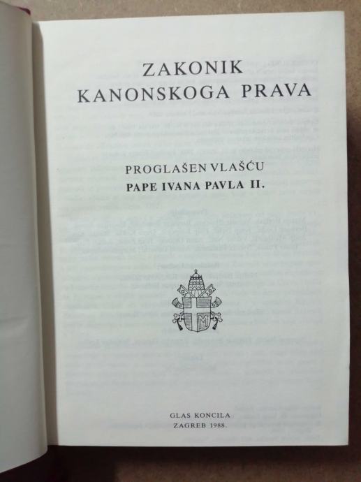 Zakonik kanonskog prava proglašen vlašću pape Ivana Pavla II. (B112)