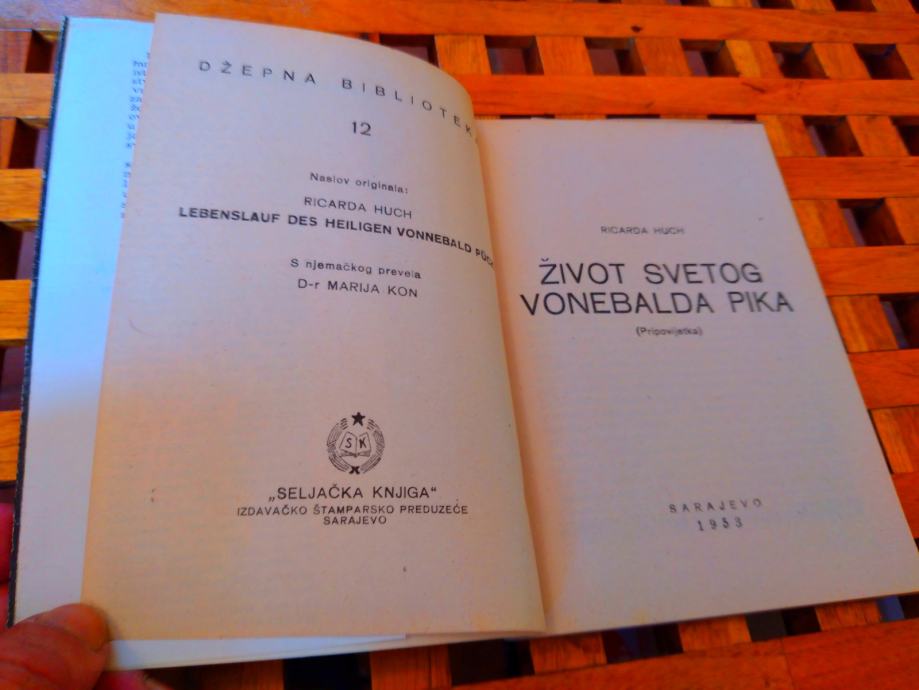Život svetog Vonebalda Pika Ricarda Huch SARAJEVO 1953