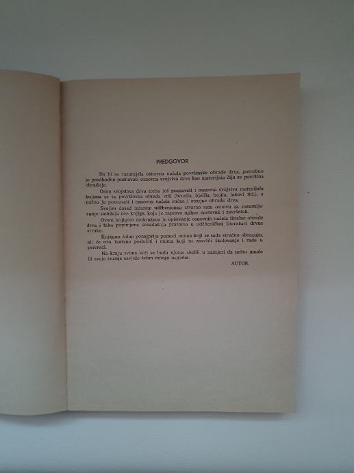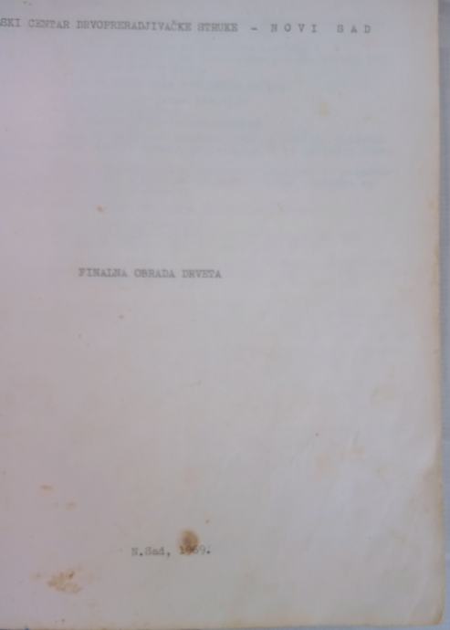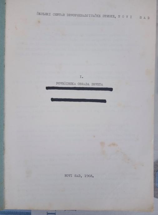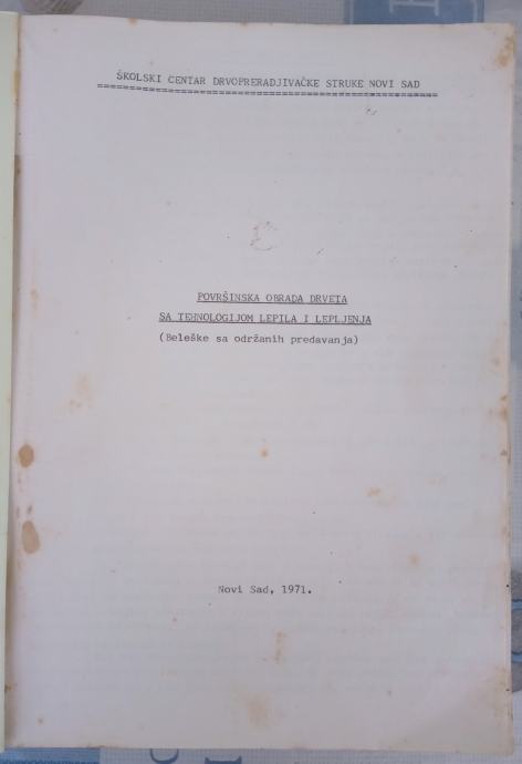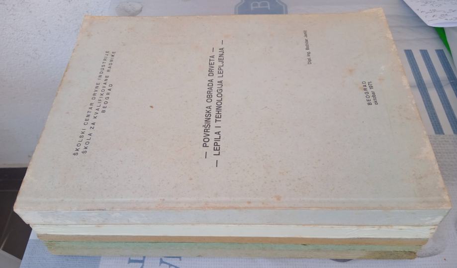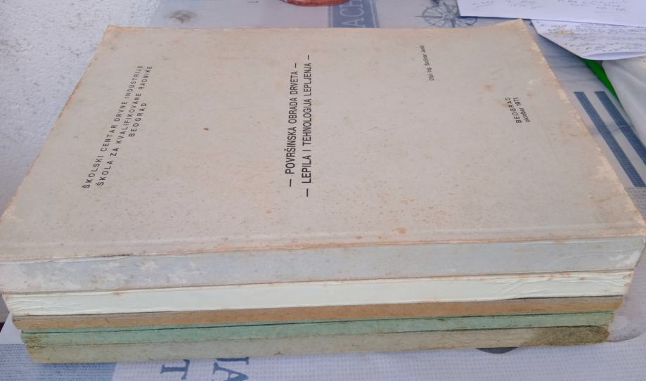 4. POVRŠINSKA OBRADA DRVETA sa Tehnologijom lepila i lepljenja (Bilješke sa održanih predavanja), Školski centar drvoprerađivačke struke Novi Sad, 1971., str. 102+15 (zadaci), meki uvez, 5,00 € / 37,67 kn