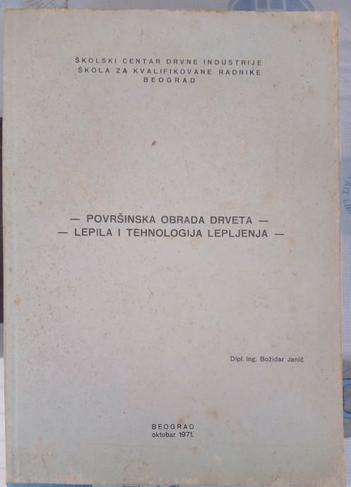 2. POVRŠINSKA OBRADA DRVETA / Lepila i Tehnologija lepljenja (Božidar Janić), Školski centar drvne industrije - Škola za kv radnike Beograd, 1971., str. 146, meki uvez, 7,00 € / 52,74 kn