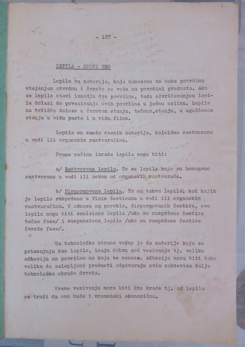 3. POVRŠINSKA OBRADA DRVETA i ljepila, skripta u 2 dijela, Školski centar drvoprerađivačke struke Novi Sad, 1968., str. 126+49, meki uvez, 7,00 € / 52, 74 kn