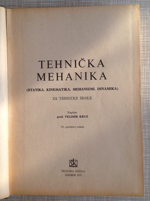 PRODAJEM SAČUVANU KNJIGU „TEHNIČKA MEHANIKA (STATIKA, KINEMATIKA, MEHANIZMI, DINAMIKA)„