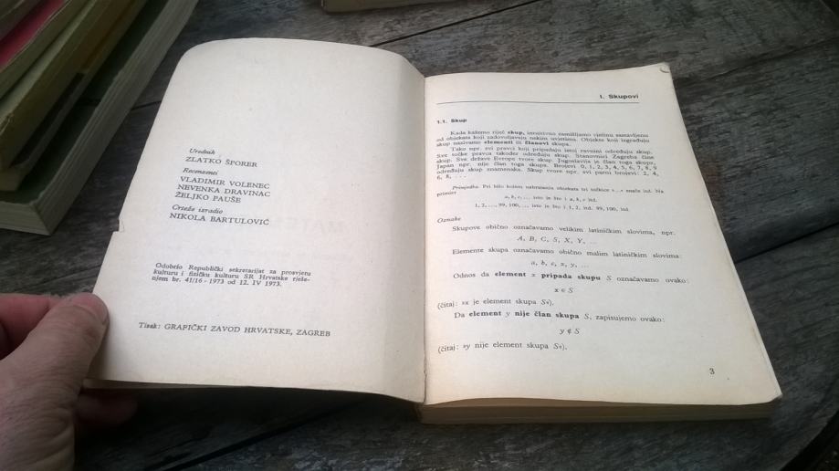 MATEMATIKA 1 PETAR JAVOR ŠKOLSKA KNJIGA 1973.