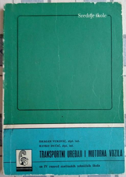 2. TRANSPORTNI UREĐAJI i motorna vozila za IV. razred tehničkih škola (D. Vuković, R. Dučić), Svjetlost Sarajevo, 1979. (II. izdanje), str. 206, meki uvez, 8,50 € / 64,04 kn, prodajem.