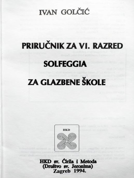 PRIRUČNIK ZA VI RAZRED SOLFEGGIA ZA GLAZBENE ŠKOLE / Golčić