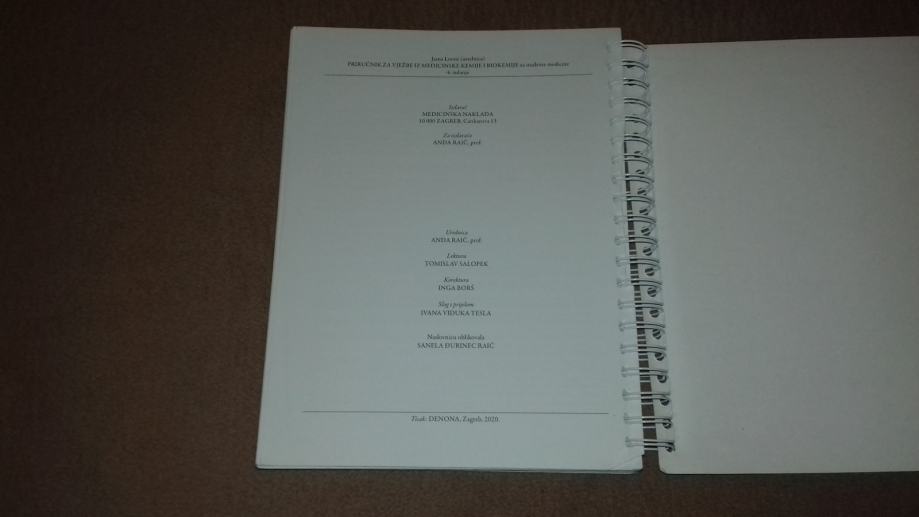 Priručnik za vježbe iz medicinske kemije i biokemije - 2020. godina, u odličnom stanju.