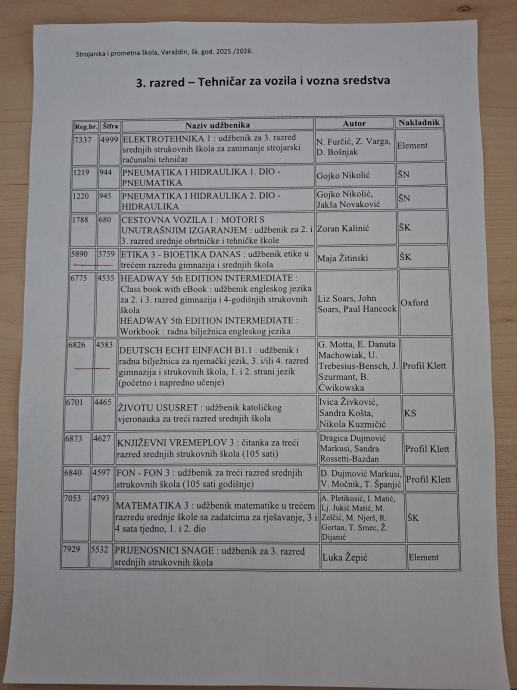 Set knjiga za 3 razred tehnicar za vozila i vozna sredstva !