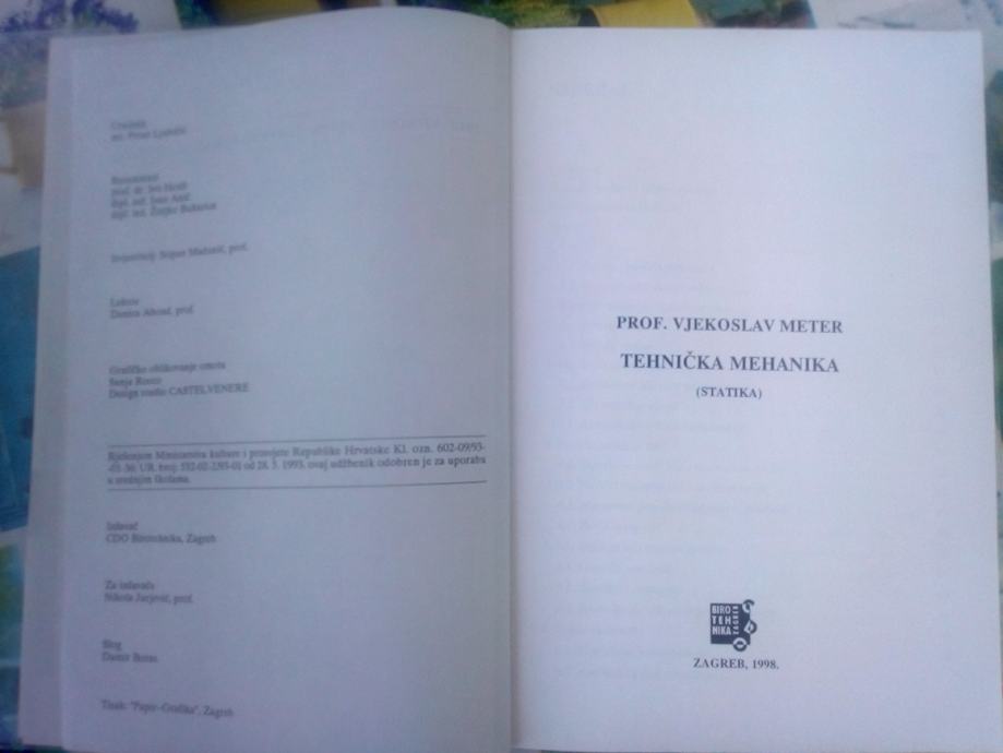 1. TEHNIČKA MEHANIKA – STATIKA, udžbenik (Vjekoslav Meter), Birotehnika Zagreb, 1998.(II. izdanje), str. 173, meki uvez, 7,00 € / 52,74 kn