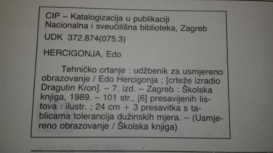 Tehničko crtanje, Školska knjiga - 1989. godina