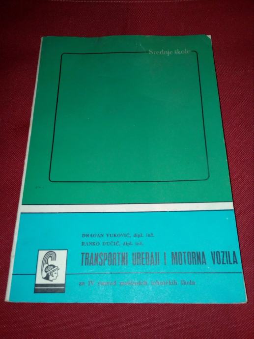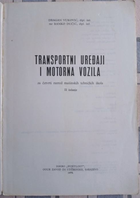 Knjigu: Transportni uređaji i motorna vozila za IV. razred tehničkih škola (D. Vuković, R. Dučić), Svjetlost Sarajevo, 1979. (II. izdanje), str. 206, meki uvez, 8,50 € / 64,04 kn, prodajem.