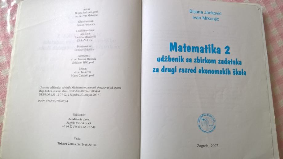 Biljana Janković, Ivan Mrkonjić :MATEMATIKA 2 - 7,50 EUR