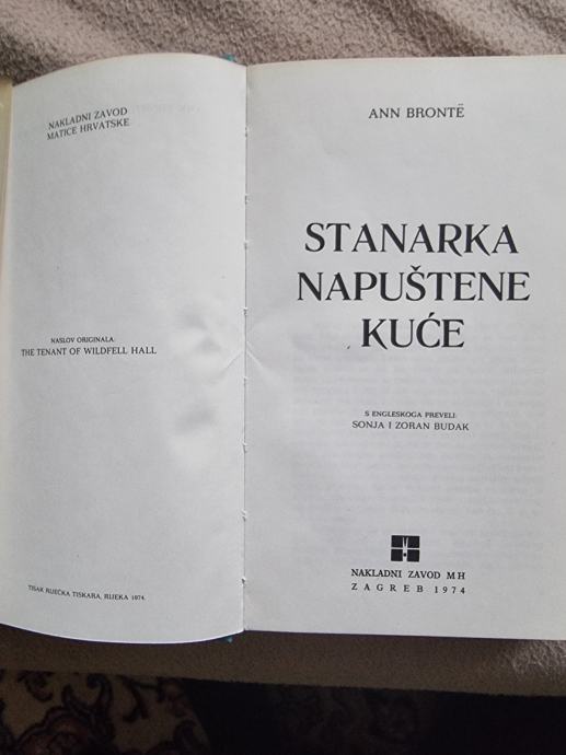 Ann Bronte: Stanarka napuštene kuće, izdanje Nakladni zavod Matice Hrvatske, Zagreb, 1974., cijena 2 eura