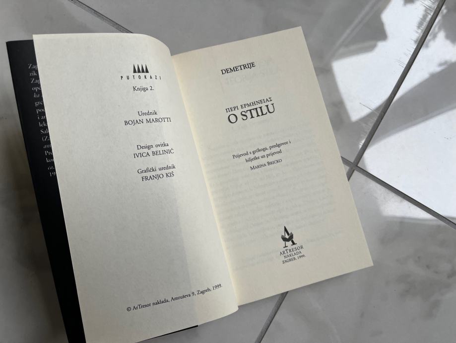 Ovaj tekst (pripisan Demetriju iz Falera, III. st. pr. Kr.) najstariji je - poslije Aristotelove "Poetike" - cjelovito očuvani književnoteoretski spis. Sastoji se od dva dijela: u uvodnom se autor bavi ustrojem rečenice, a u drugom dijelu raspravlja o četirima vrstama stila i njihovom mogućem kombiniranju. Tekst je pisan paralelno na grčkom i hrvatskom jeziku, uvodnu studiju o djelu potpisuje prevoditeljica Marina Bricko. Knjiga sadrži i izbor iz bibliografije o Demetrijevom spisu te kazala imena osoba i pojmova navedenih u djelu.