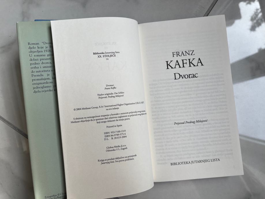 "Dvorac", možda i najbolje što je Kafka napisao, i danas stoji nadmoćno, nedohvatljivo, kako zidano zdanje glavnom liku u romanu, tako i knjiško izdanje brojnim Kafkinim sljedbenicima.