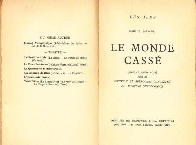 Pièce en quatre actes, suivi de "Position et approches concrètes du mystère ontologique".