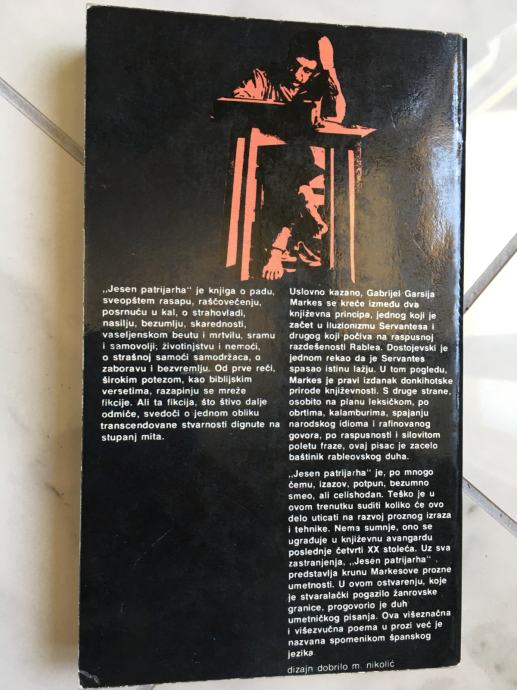 Remek djelo nezaboravnog stila, ova bajkovita priča o umirućem tiraninu, ili, kako je sam autor to jednom prilikom napisao, "poema o usamljenosti moćnika", onaj je roman zbog kojeg je Gabriel García Márquez postao najhvaljeniji i najpopularniji predstavnik magijskog realizma.