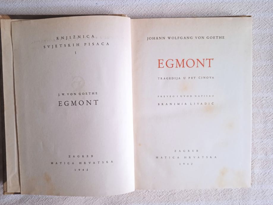 J.W.VON GOETHE EGMONT ZAGREB 1942 G