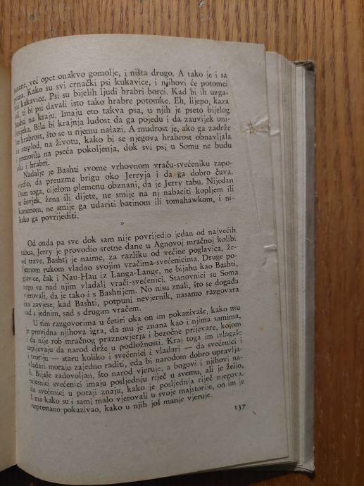 Posveta kemijskom olovkom na prvoj praznoj stranici i oštećenje (3 cm) na donjem spoju stranica (prikazano na fotografiji).