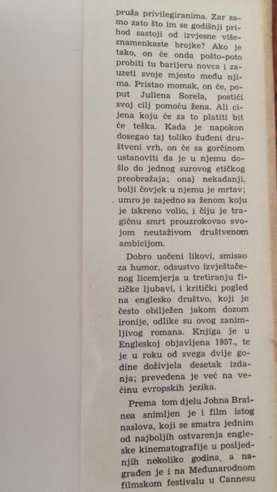 Knjiga je u Engleskoj objavljena 1957. godine. Prema knjizi snimljen je i film, koji je 1960. godine dobio nagradu na Međunarodnom filmskom festivalu u Cannesu, a u to je vrijeme smatran jednim od najboljih ostvarenja engleske kinematografije. Roman pokazuje društvenu panoramu jednog osrednjeg provincijskog grada Engleske.
