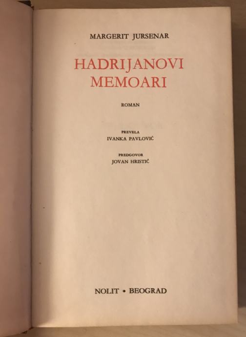 Jursenar ( Yourcenar ),M : Hadrijanovi memoari