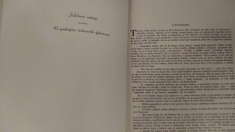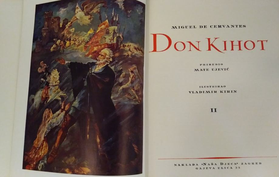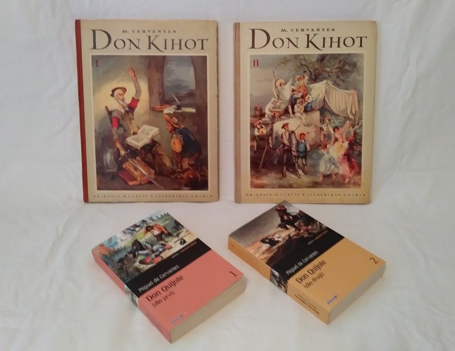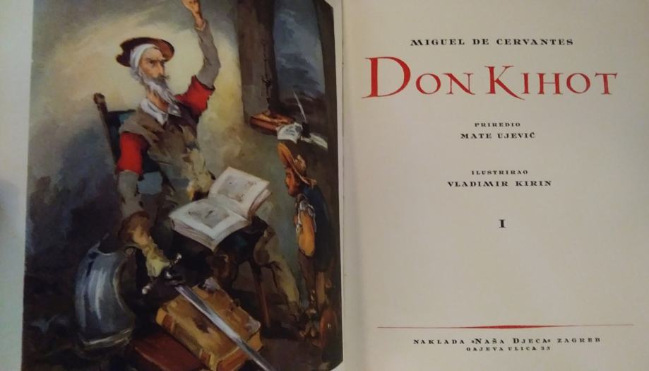 Prodajem komplet knjiga Don Quijote, prijevod djela „El ingenioso hidalgo Don Quijote de la Mancha" + Don Kihot, 1 & 2, autor Miguel De Cervantes Saavedra, jubilarno, bogato ilustrirano izdanje povodom 10-godišnjice izdavačke djelatnosti Naklade "Naša djeca", priredio Mate Ujević, ilustrirao Vladimir Kirin,