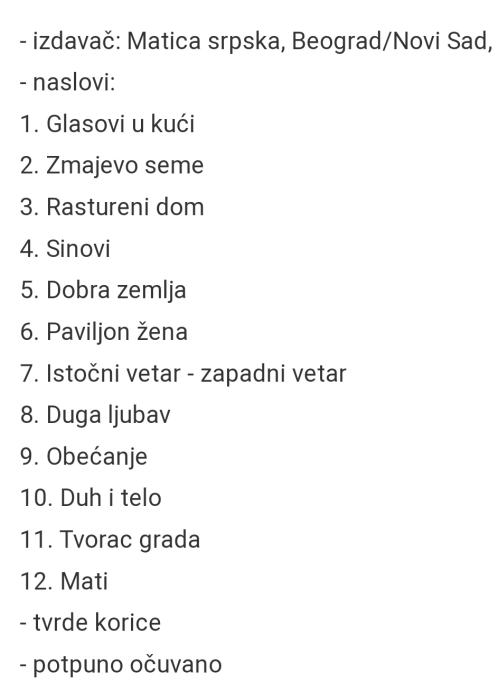 Prodajem 12 knjiga spisateljice Pearl Buck.