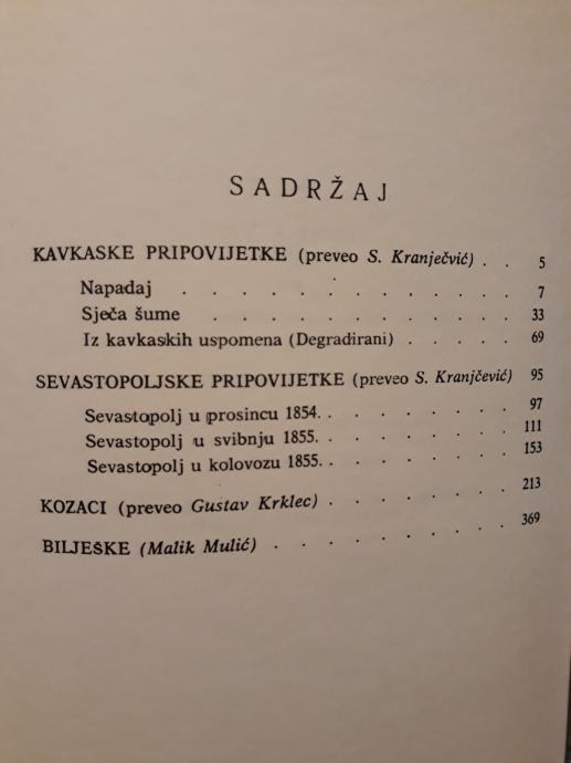 KOZACI / Kavkaske pripovijetke-Sevastopoljske pripovijetke/L.N.Tolstoj