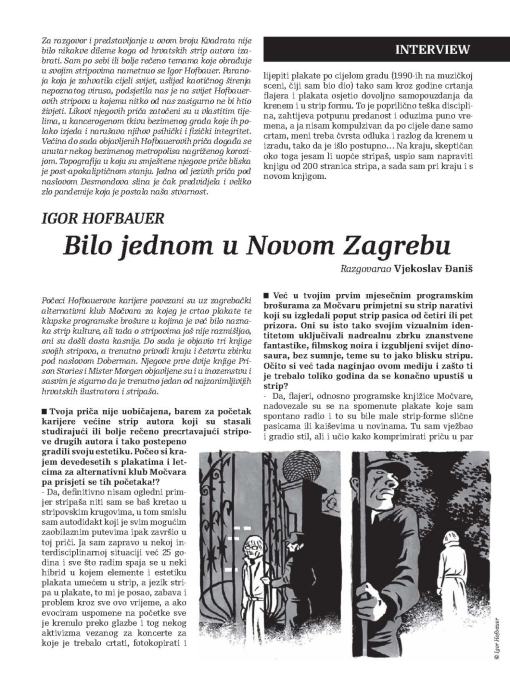 Ovaj broj donosi veliki intervju s jednim od trenutno najzanimljivijih hrvatskih ilustratora i strip autora Igorom Hofbauerom.