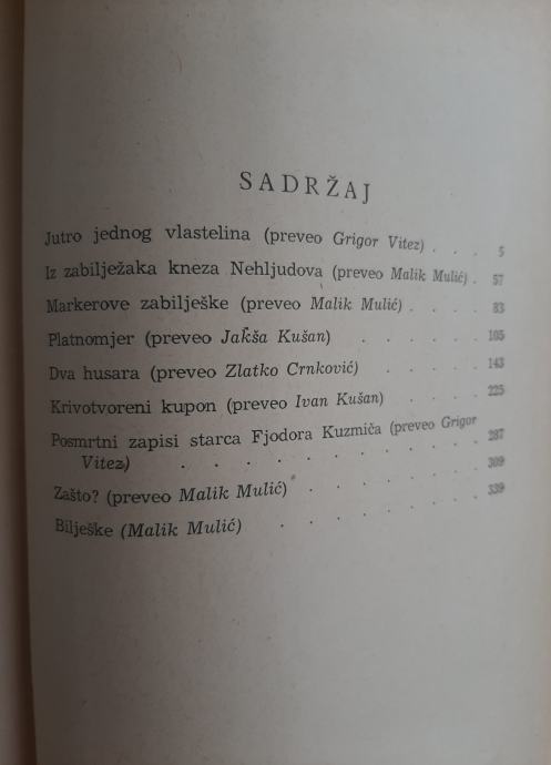 Izabrana djela, prema popisu na fotografiji.