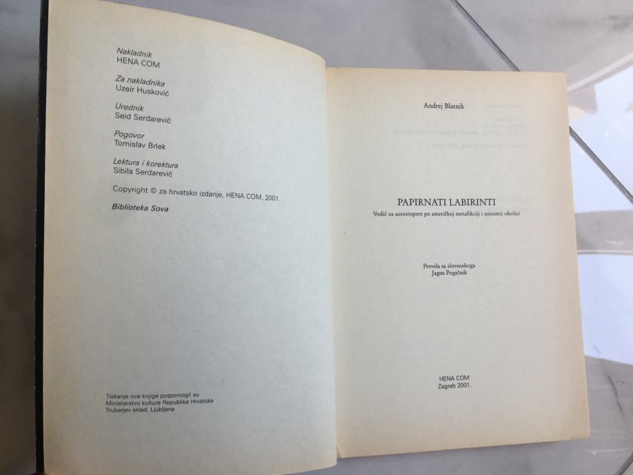 Andrej Blatnik, PAPIRNATI LABIRINTI: Vodič za autostopere kroz američku metafikciju i njezinu okolicu