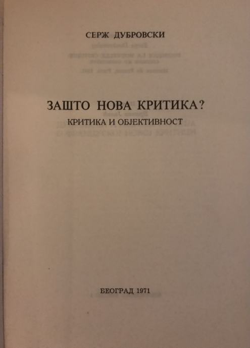 Dubrovski ( Doubrovsky ),Serž ( Serge ):Zašto nova kritika ?