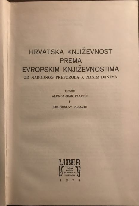 Flaker/Pranjić:Hrvatska književnost prema evropskim književnostima